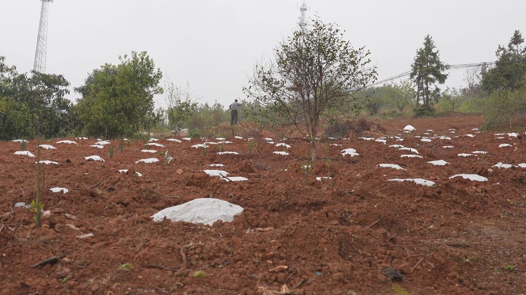 4月11日,在中方县新建镇新建村,当地村民正抢抓农时对种植的中药材木姜子进行田间除草管护,为中药材增产增效打好基础。