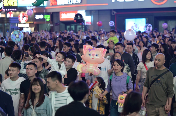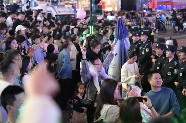 五一假期火爆,长沙市中心“最美人墙”上线!网友:满满的安全感
