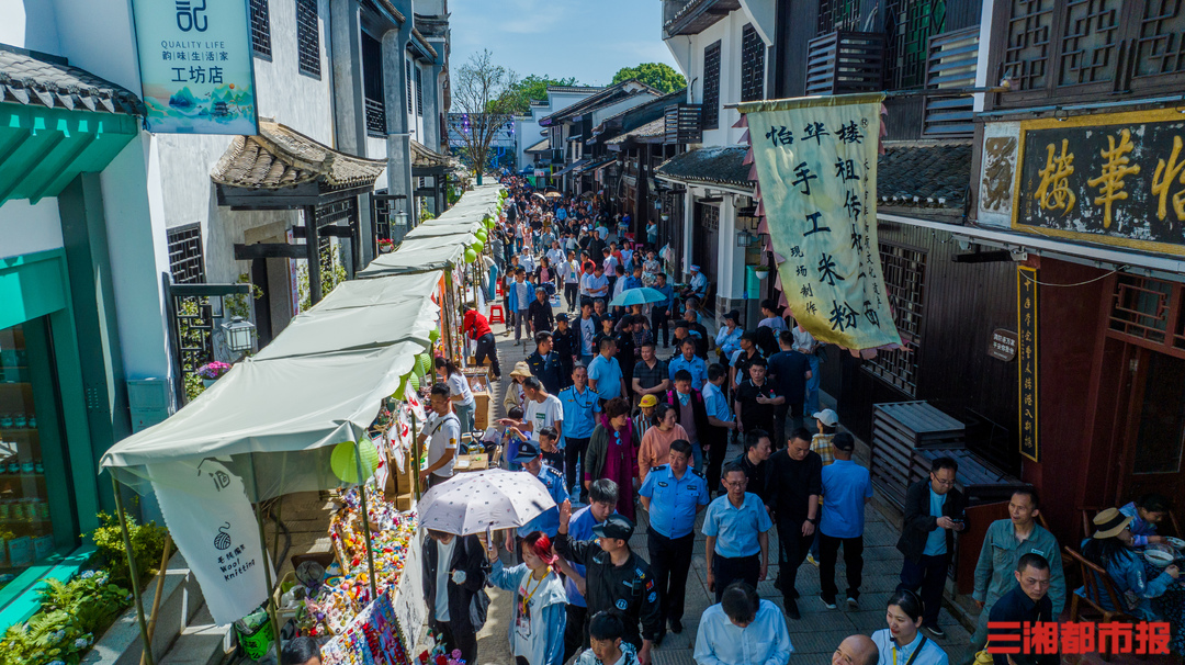 三湘都市报·新湖南客户端5月1日讯(全媒体记者 虢灿 通讯员 李杨鸣)亭台楼阁、亲水河街、网红美食、非遗手作,这些在长沙市望城区靖港古镇都能享受到。今天上午,“靖港古镇2.0蝶变开街”活动举行,配套打造的靖港古镇“有味市集”吸引了许多游客。