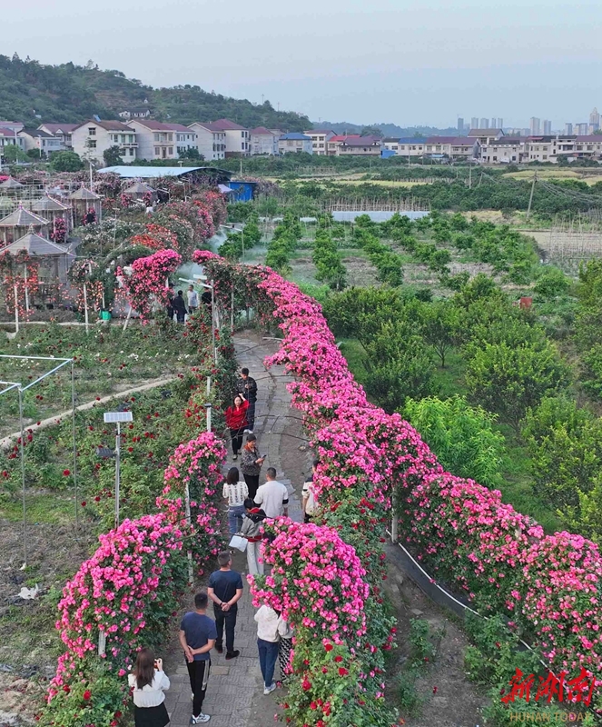 5月1日,溆浦县仲夏玫瑰庄园,游客在盛开的玫瑰花前拍照、赏景。暮春时节,该庄园种植的500多个玫瑰花品种竞相怒放,成了当地网红打卡地,吸引大批游客“闻香而来”踏青赏景,乐享“玫”好时光。 湖南日报全媒体记者 李健 摄