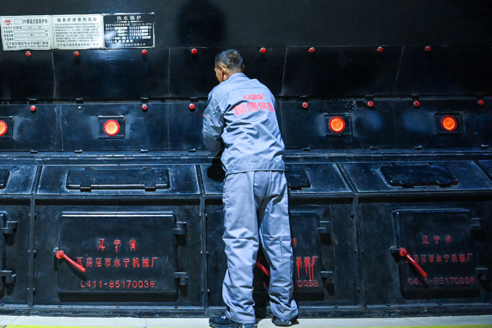 吉林省长春国信供热集团红旗分公司热源厂工人在查看锅炉运行状况(2022年10月19日摄)。新华社记者 颜麟蕴 摄