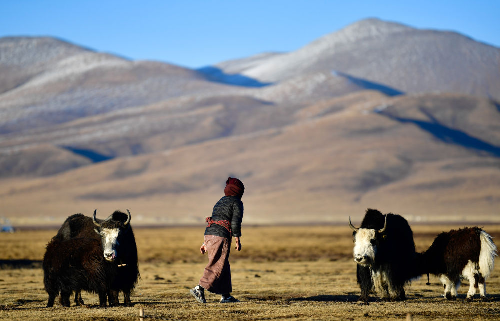 青海省玉树藏族自治州称多县珍秦镇二村牧民放牧归来(2020年10月28日摄)。新华社记者 张龙 摄