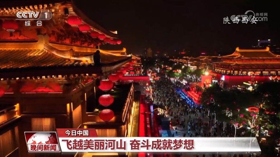 这里是位于陕西西安的大唐不夜城,华灯初上、传统与时尚碰撞、古老与现代相得益彰,中华优秀传统文化融入我们的血液,它让我们焕发夺目光彩。