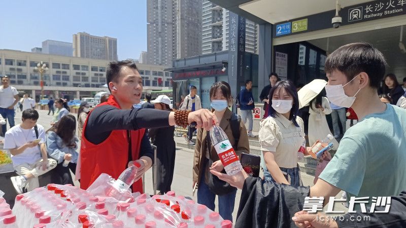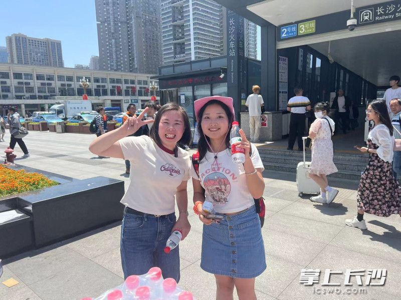 “长沙人这么热情吗?”一位来自东北吉林的老大爷刚出站,接过赠送的矿泉水后惊喜地说。得知老人是第一次来长沙游玩,小伙伴们主动介绍起长沙美食。“这是我第一次来长沙,就冲你们这么热情,我下次要叫上全家人都来长沙玩……”老人爽快地说。