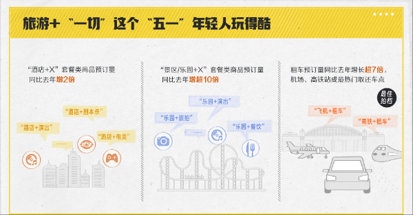 二是学生群体在出游人群中的比例显著提升,“特种兵式”旅游、沉浸式旅游等新型游玩方式兴起,带动了国内旅游市场的多元化发展。飞猪发布的《2023“五一”出游快报》显示,今年“五一”,包含演出、玩乐、电竞、餐饮等体验元素在内的“酒店+X”套餐类商品备受青睐,预订量同比去年增长超2倍;包含汉服、旅拍、展览等体验元素在内的“景区/乐园+X”商品也受热捧,预订量同比去年增长超10倍。