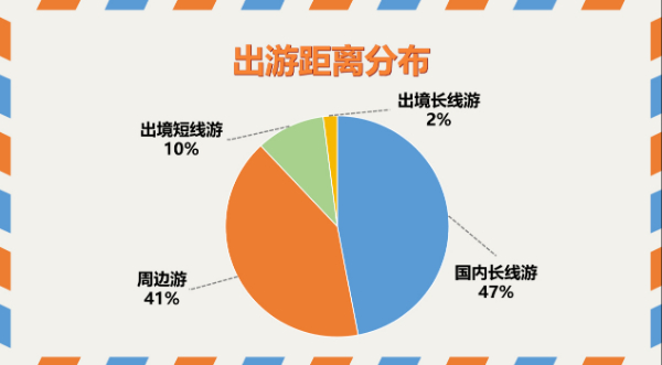 出游距离方面,国内长线游、周边游”火力全开”,出游人数占比分别为47%和41%,火爆程度不分伯仲。