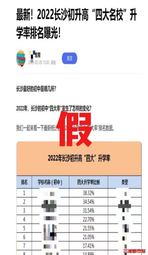 【谣言】长沙最好的初中是哪几所?初中四大率有什么变化?哪些学校升学率一骑绝尘?看到这样的标题,配上看似很详细的数据,是不是很可信?