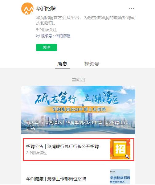 近日,“华润招聘”微信公众号发布消息显示,珠海华润银行总行行长正在公开招聘。