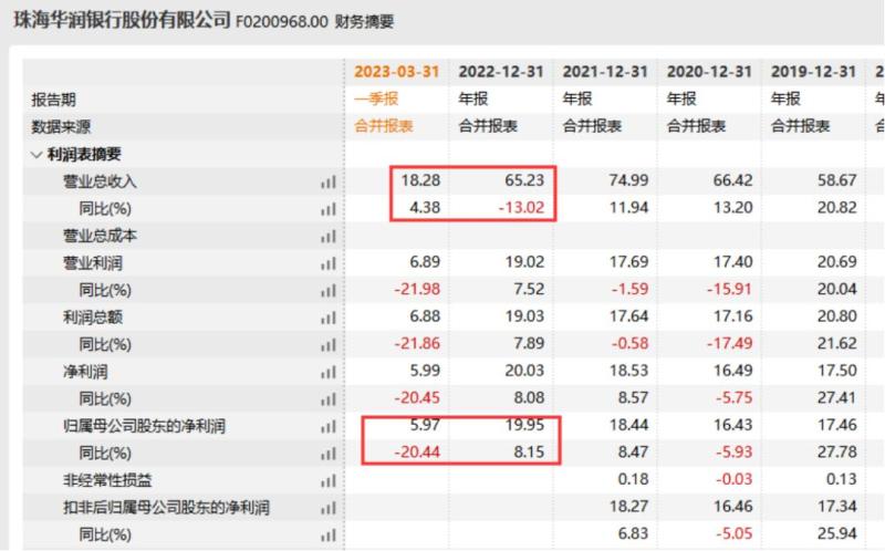 业绩方面,近期珠海华润银行披露2022年年报显示,去年该行实现营业收入65.23亿元,同比减少13.02%,实现归母净利润19.95亿元,同比增长8.15%。