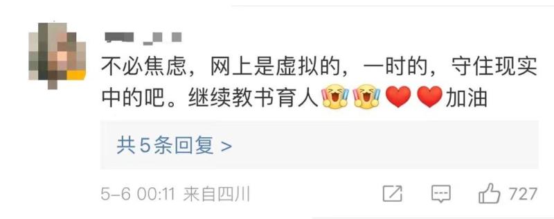 此外,黄老师表示面对网友的负面质疑,她会难过。但也将继续做好自己的本职工作,无法改变别人的看法,只能不断调整自己的心态,做好教学,不忘初心。