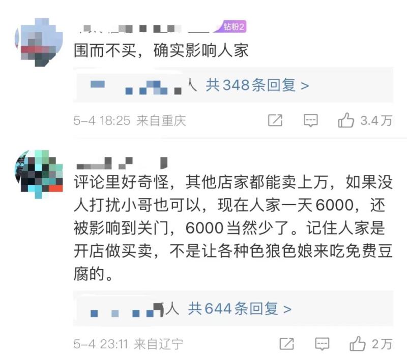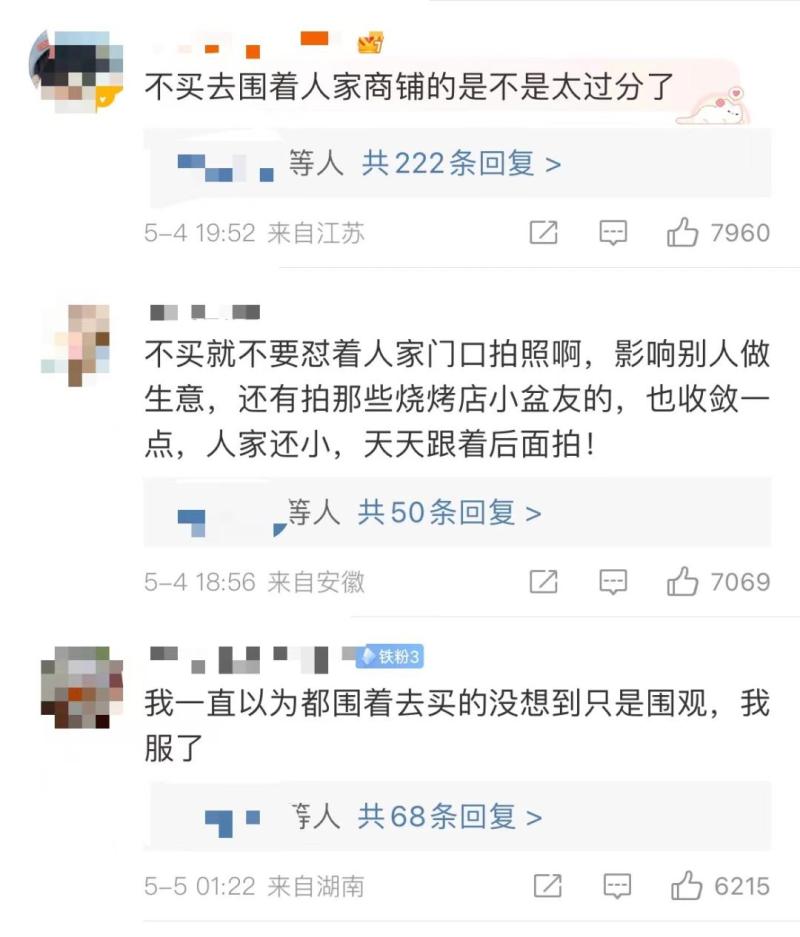 网友们对小哥的遭遇表示心疼,“围而不买,确实影响生意”,“真正想买的人也不愿浪费时间排队”。