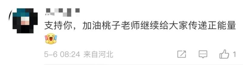 网友们纷纷发来鼓励,“桃子老师不必焦虑”“大龄儿童也想拥有温柔的桃子老师”。