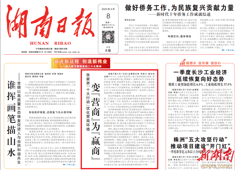 助企纾困减负、优化营商环境,张家界各部门各司其职、主动作为,让企业真切地感受到优化营商环境的“力度”与“温度”。今年,张家界大力实施优化营商环境“十大行动”,从开办企业、信贷支持、旅游市场整治等方面着手,千方百计为项目推进和企业发展纾困解难。