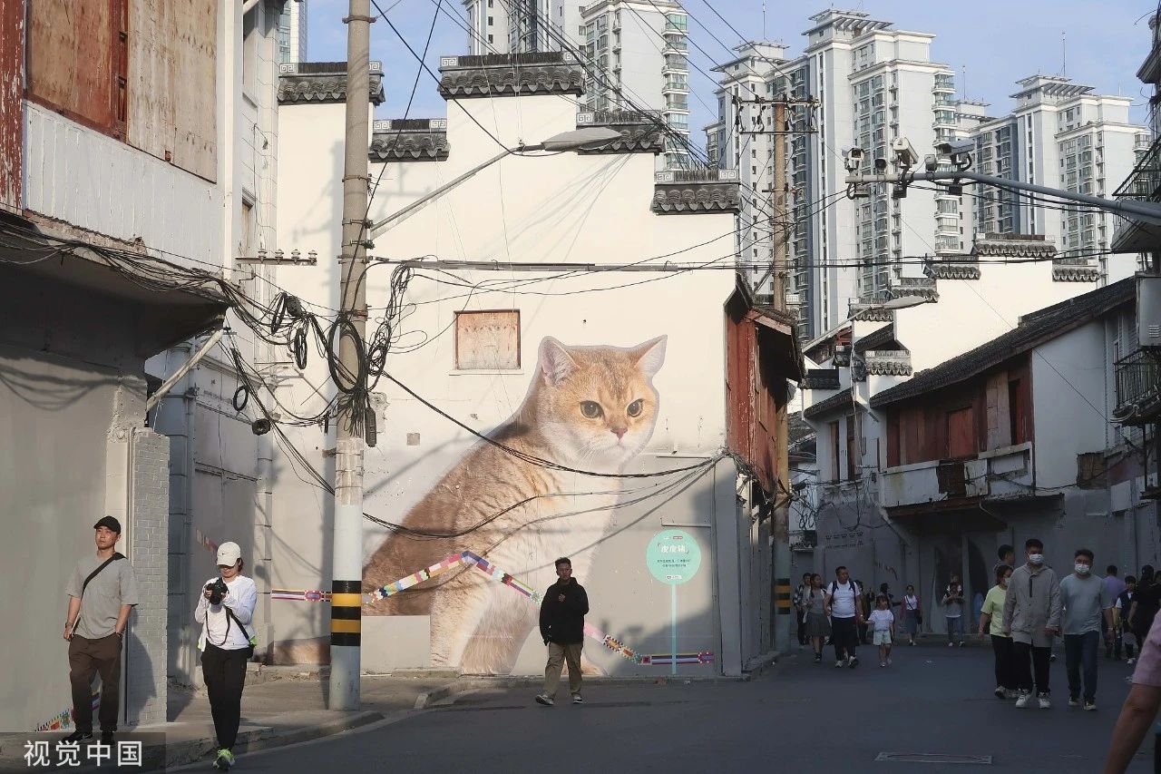 五月初,在上海方浜中路老城厢的墙面上,出现了许多巨大的猫咪墙绘,生动可爱的它们,吸引了众多市民、游客,一时间,这条面临拆迁改造的老街,变身“猫咪街头档案馆”,一改以往人迹寥寥的景象,变得热闹起来。