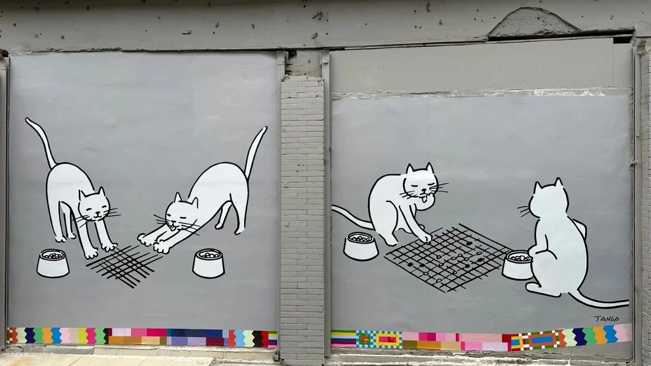 对于“外滩猫街”的爆火,Tango“一点也不意外”。以往人们看猫,都是处在一个“居高临下”的视角,这次把猫咪画上墙,能让人与猫“平视对方”,一路走过去,和猫咪一一对视,就好像自己也是它们中的一员。