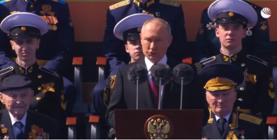 普京5月9日在红场阅兵式上讲话的画面,图源:俄新社直播画面