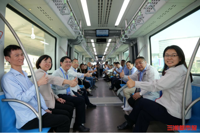 (5月9日,湖南湘江新区大王山欢乐云巴开通后,市民乘坐体验。范龙贵 摄)