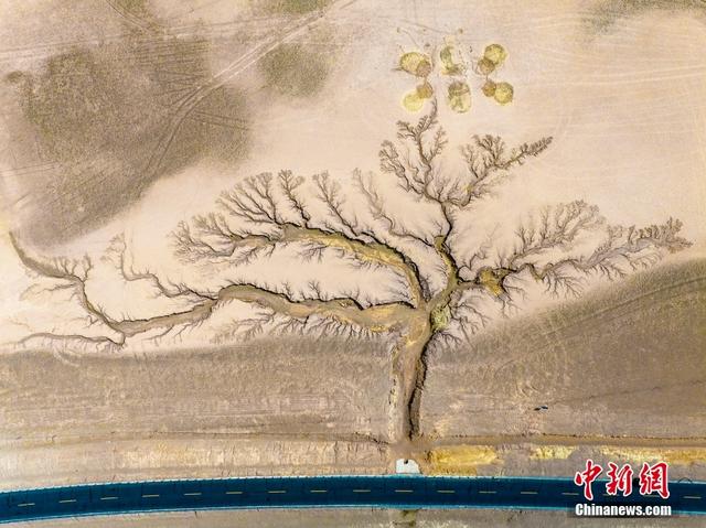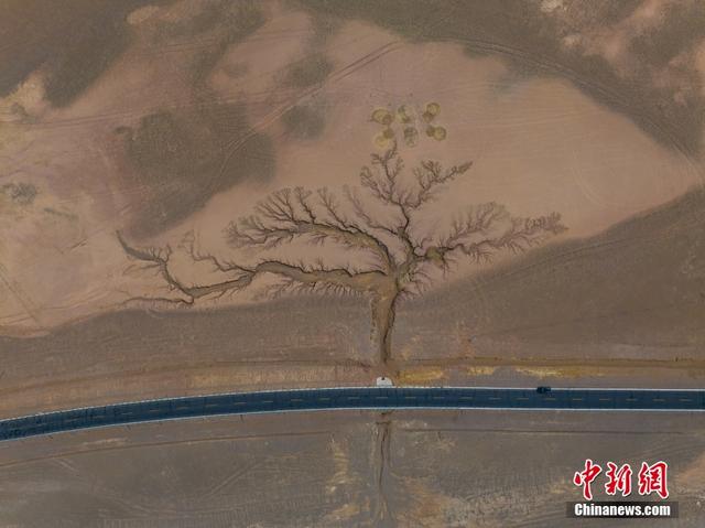 5月8日,西藏那曲尼玛县, 从高空俯瞰位于达则措南的“大地之树”景观。图/CNSphoto 黄伦斌