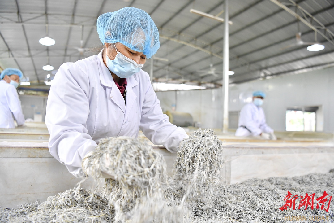 (5月10日,张家界市永定区罗塔坪乡宏岗村莓茶基地,湘巧茶叶开发有限公司生产车间,工人正在炒制当季新茶。)