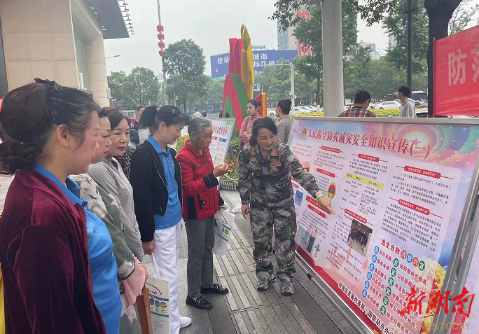 新湖南客户端5月12日讯(通讯员 陈红兵)今天上午,株洲市荷塘区国动办联合区应急局、区卫生健康局、区住建局、区交通局、区消防救援大队等单位,在银泰财富广场开展以“防范灾害风险 护航高质量发展”为主题的防灾减灾宣传活动。