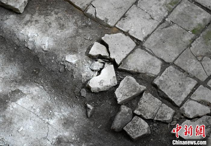 图为张家口市崇礼区太子城遗址展厅东半部的遗址发掘现场,刻有“内”字的残砖。 翟羽佳 摄