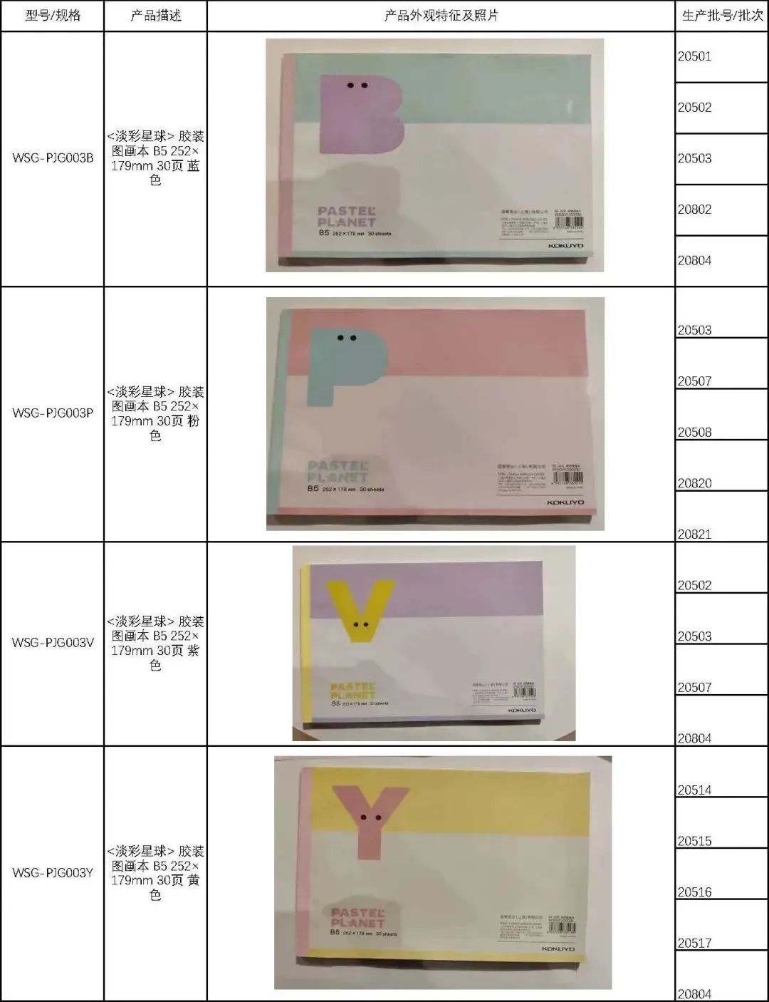 🔴2018年3月24日至2023年2月2日生产的KOKUYO牌图画本,共438,114件。
