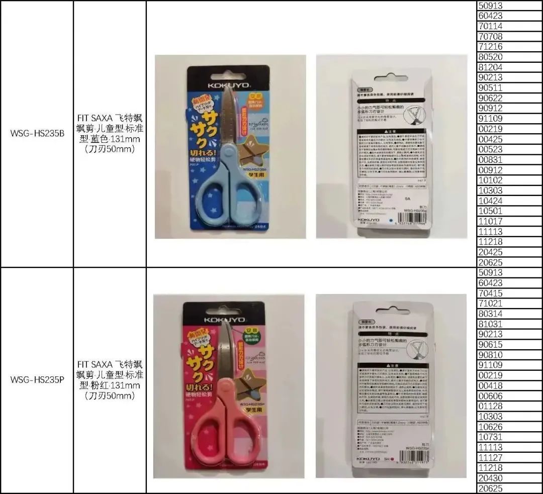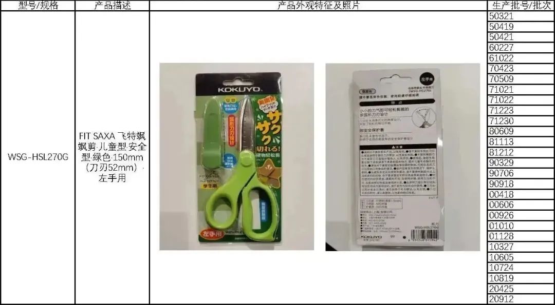 🔴2015年3月21日至2022年9月12日生产的KOKUYO牌剪刀,共603,385件。