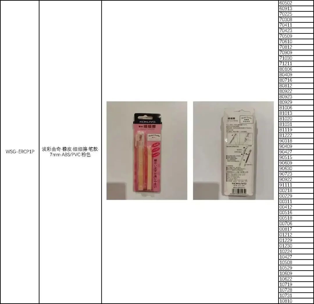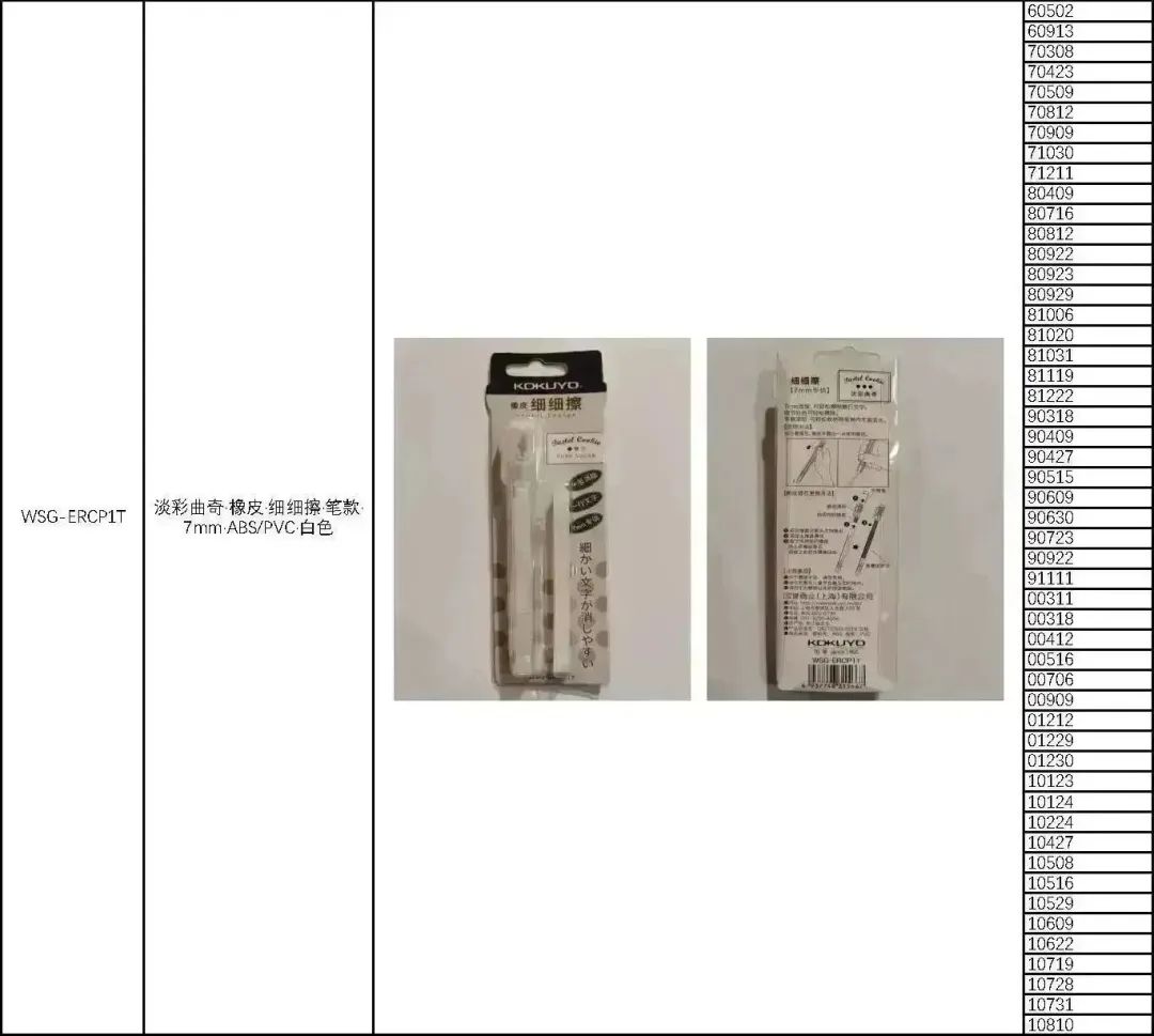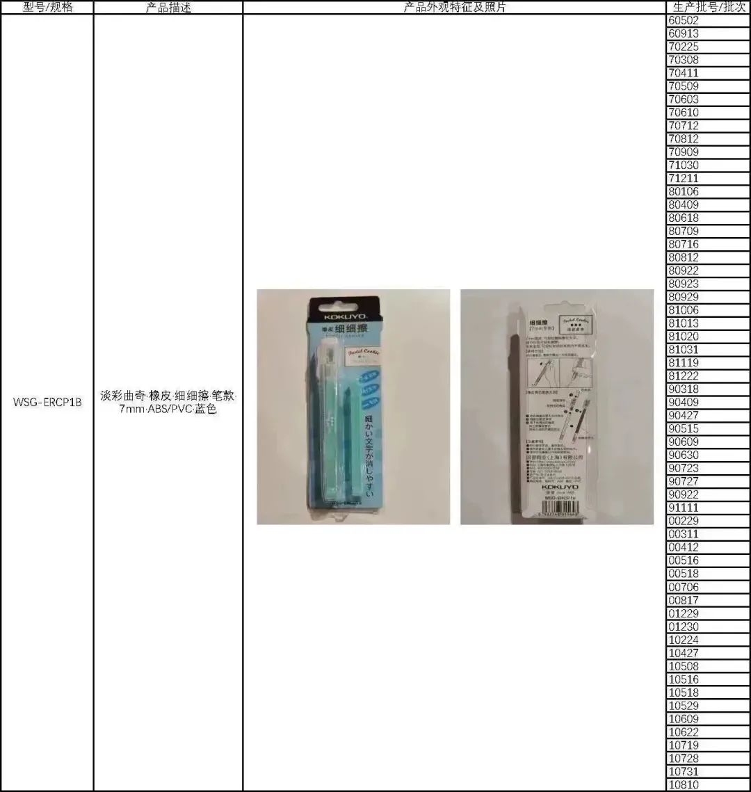 🔴2015年5月13日至2021年8月26日生产的KOKUYO牌橡皮擦,共2,588,781件。