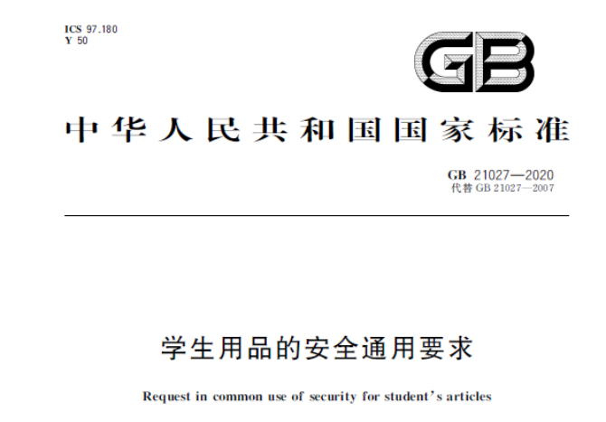 针对学生用品,目前现行有效的强制性国家标准为GB 21027-2020《学生用品的安全通用要求》(2022年2月1日起实施),标准中增加了可触及塑料件中邻苯二甲酸酯增塑剂限量等大家比较关注的指标要求。