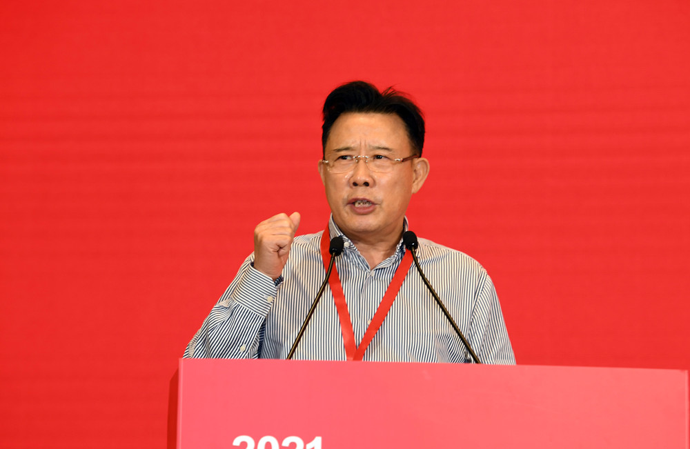 (梁稳根在2021中国民营企业500强峰会上做主旨演讲。 湖南日报全媒体记者 田超 傅聪 摄)
