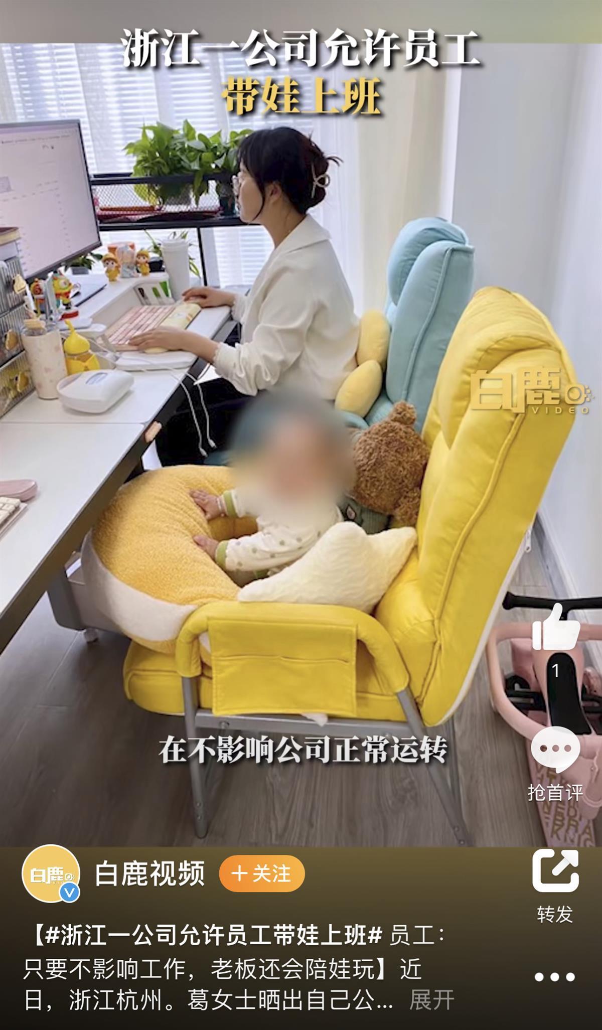 近日,浙江杭州的葛女士晒出自己公司允许员工偶尔带娃上班的照片,引发网友热议。据葛女士讲述,同事们遇到特殊情况,会偶尔带娃上班,只要不影响工作,公司都是允许的,非常人性化。另一方面,孩子们都非常听话,爸爸妈妈在工作,孩子们就会安静玩耍不会吵闹。