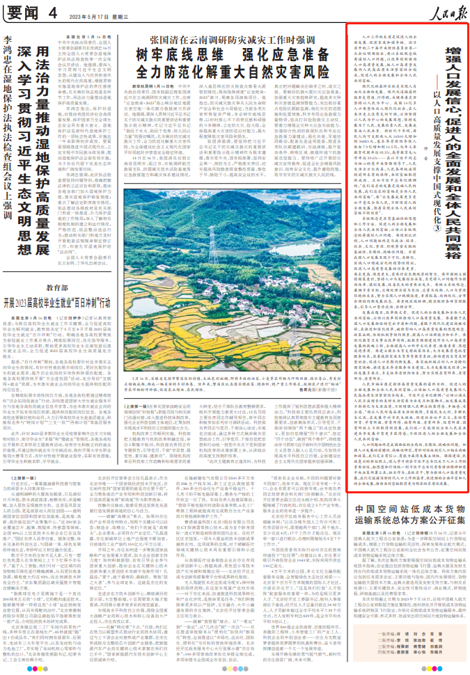 人民日报仲音:增强人口发展信心,促进人的全面发展和全体人民共同富裕