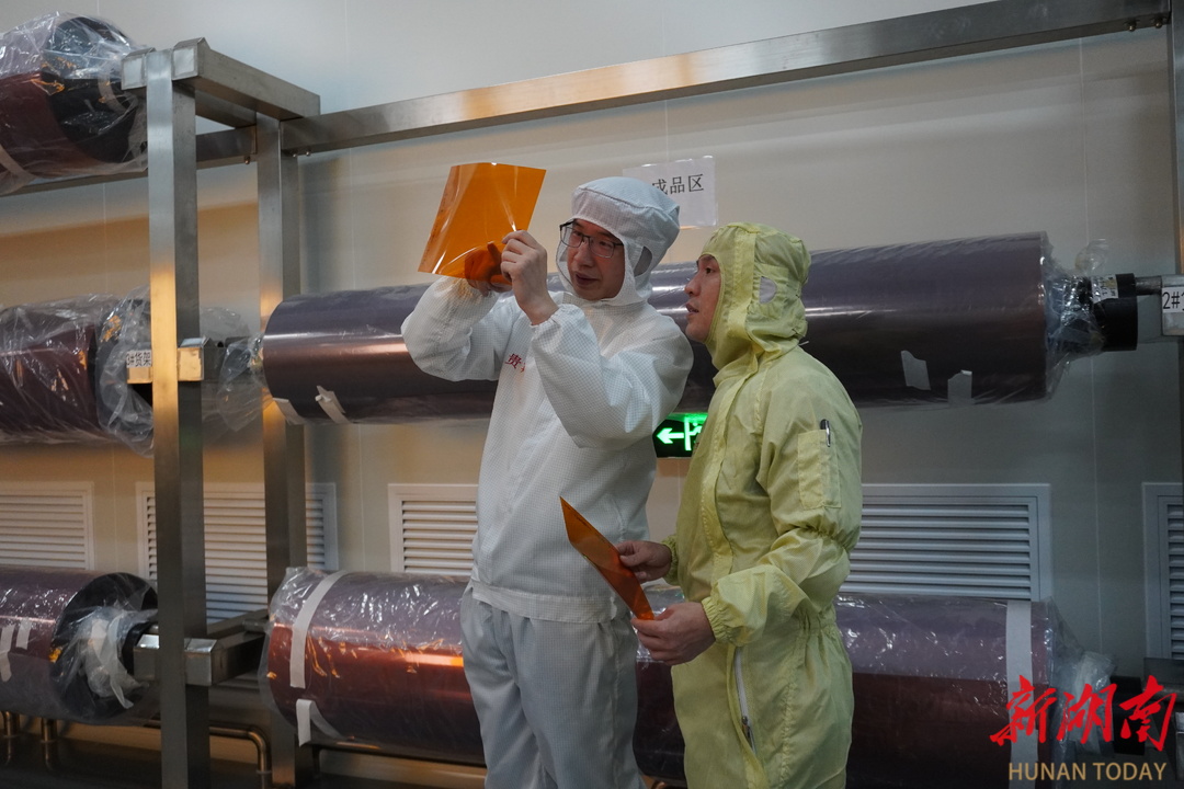 说起株洲,张步峰不仅自豪,而且感恩。他说是株洲这片科技热土,让他有了施展才华的天地,才能十年磨一剑,打破国外高性能PI膜的“卡脖子”,建成了国内首条化学亚胺法PI薄膜生产线,让他能够站立在科技前沿,用科学之火点燃株洲“制造名城”之光。