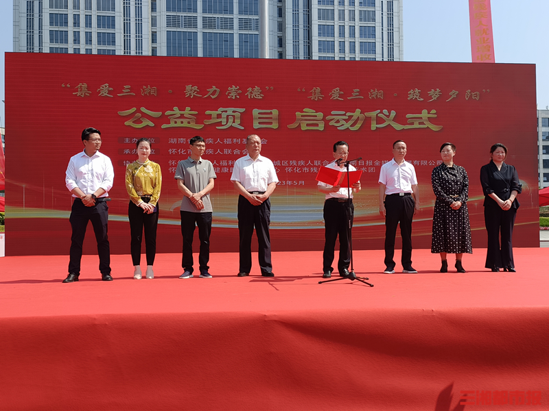 (5月18日,怀化市政务中心广场,湖南省残疾人福利基金会启动了“集爱三湘·筑梦夕阳”和“集爱三湘·聚力崇德”两个公益项目。)