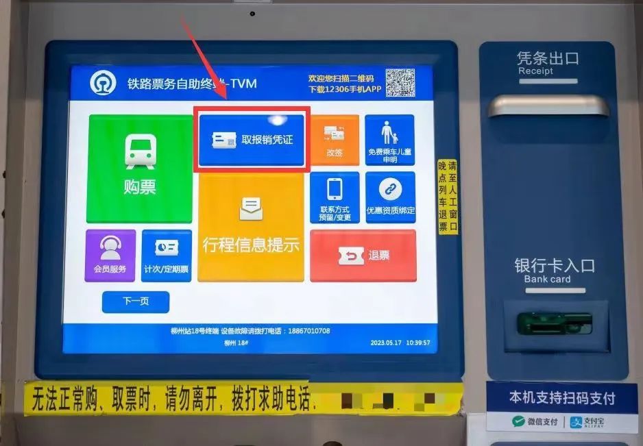 旅客可以点击屏幕上“取报销凭证”