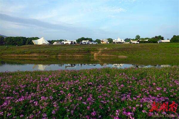 5月的新化国家级龙湾国家湿地公园,山青青含翠,水滟滟生波。在河之洲,满目葱茏,绿意盎然,广阔的河岸滩涂,芳草萋萋宛如大草原,河风拂面,暗香袭人。慕名而来的游客,在这里尽情开展户外活动,与大自然亲密接触,一辆辆房车,一顶顶帐篷,为这美丽的乡村“大草原”徒增了几分现代气息,时尚之美,更为乡村振兴增添了发展活力和生机。待夕阳西下,晚霞满天,则天光云影,岛影如画。余晖散尽,热情的村民燃起篝火,熊熊火焰在人们的眼神里欢快起舞,一张张笑脸映红了这火热的现代乡村,留下难忘的美好时光。