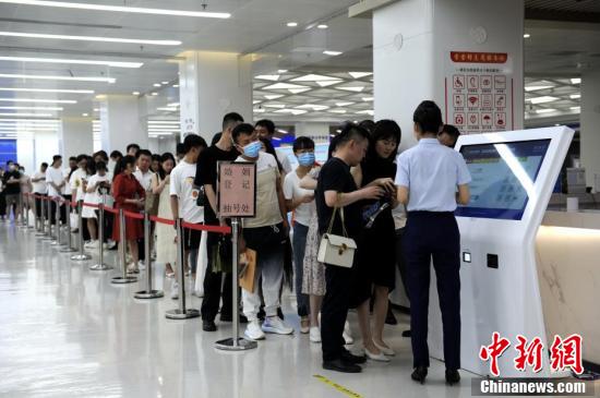 5月20日,因与“我爱你”谐音,许多新人都选择在这一天登记结婚。据了解,西安市未央区民政局的婚姻颁证大厅当天仅线上预约的新人就有360多对。图为图为新人正在排队取号。