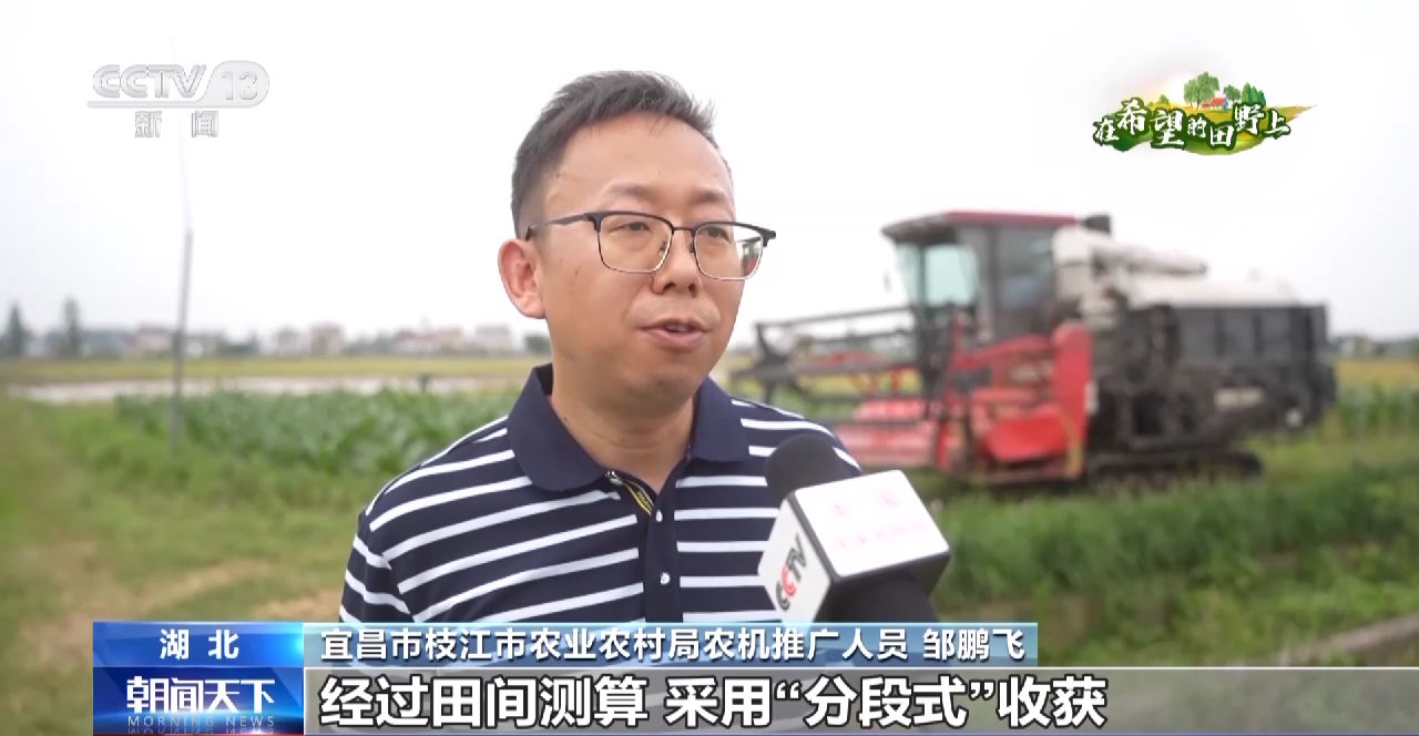 总台央视记者 陈烨炜:我现在是在湖北省枝江市的一处油菜地里,在我身后,几台收割机正来回穿梭作业,今年这里采用的是分段式的收割方法,这种方式可以大大降低机收的损失率,有助于增产增收。