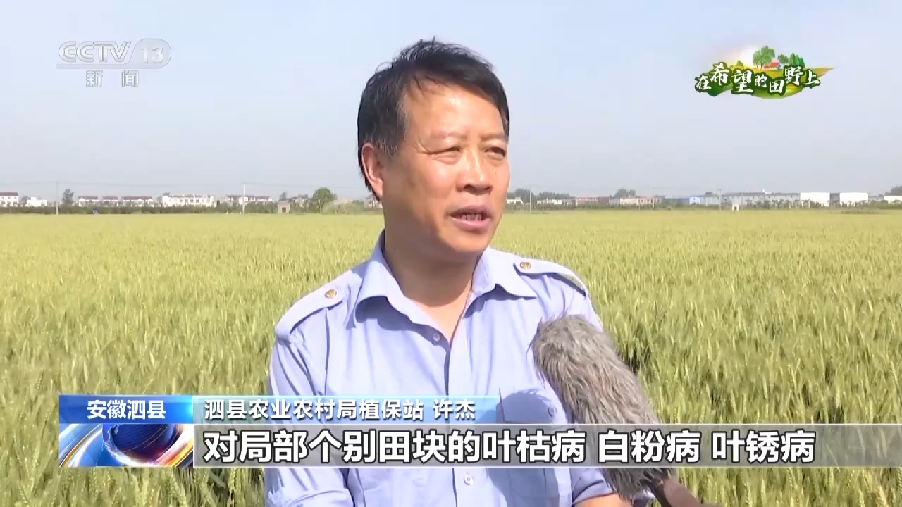 泗县农业农村局植检植保站站长 许杰:对局部个别田块的叶枯病、白粉病、叶锈病可以增加一点杀菌剂,有针对性进行防治,在喷施时候一定要喷匀、喷透、喷细。