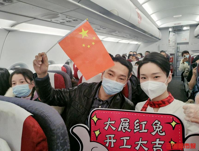 (2月2日,湖南航空持续配合人社部门开展“点对点”包机直达送工服务)