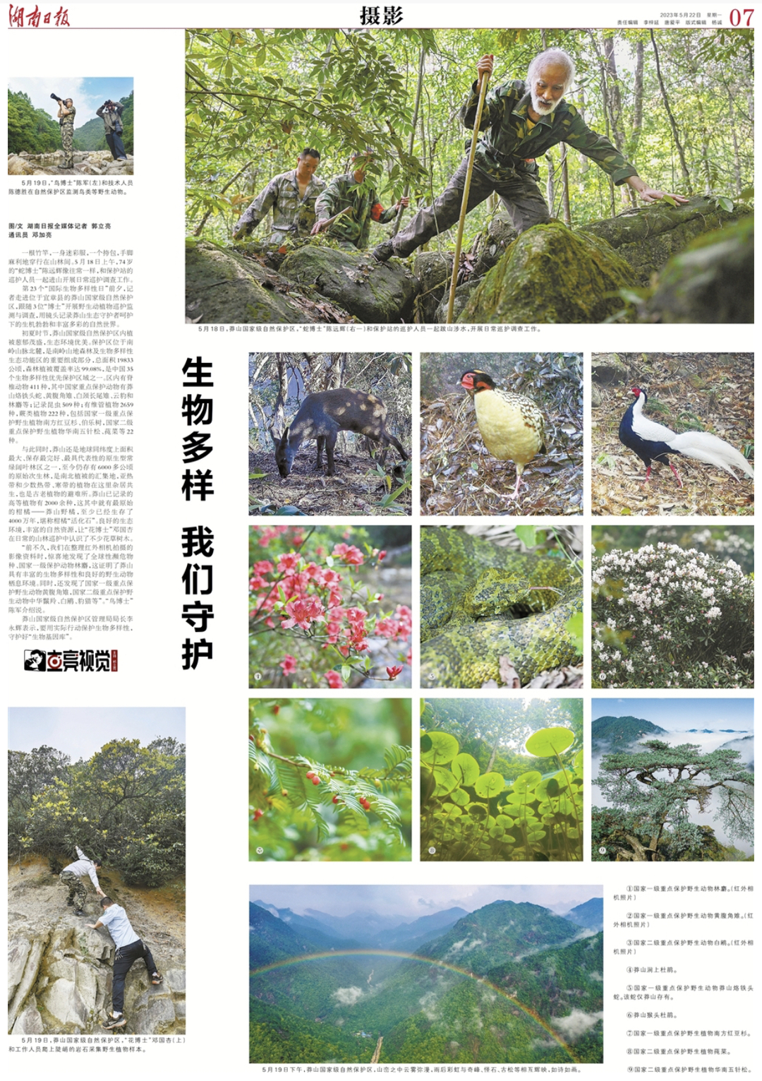第23个“国际生物多样性日”前夕,记者走进位于宜章县的莽山国家级自然保护区,跟随3位“博士”开展野生动植物巡护监测与调查,用镜头记录莽山生态守护者呵护下的生机勃勃和丰富多彩的自然世界。