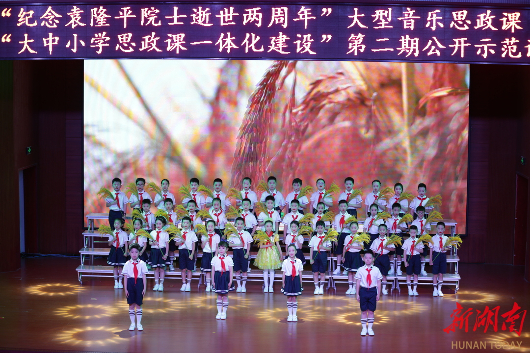湖南日报·新湖南客户端5月22日讯(记者 李治 通讯员 罗怡珑 黄锐卿)今天,由长沙市芙蓉区教育局、湖南农业大学马克思主义学院发起,联合全国15个省(市、区)的30多所院校、新闻媒体等单位,以“纪念袁隆平院士逝世两周年”为主题,以“大型音乐思政课”为载体,“纪念袁隆平院士逝世两周年”大型音乐思政课暨“大中小学思政课一体化建设”第二期公开示范课在芙蓉区育英学校举行。