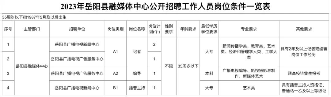 2.具有全日制大学及以上学历的应往届毕业生,汉语言文学、新闻传播学、播音主持、影视摄影与制作、广播电视编导、广播影视编导、戏剧影视导演等相关专业。