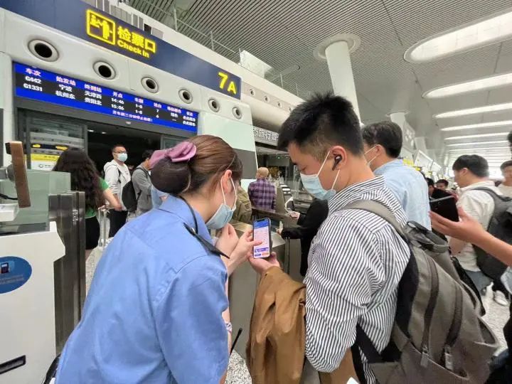 倪先生说,候车大厅里整体的秩序没有混乱,但检票速度慢了不少。他看见一些行动不便的老人在上下扶梯时,有安保人员扶着老人,协助其上下楼。
