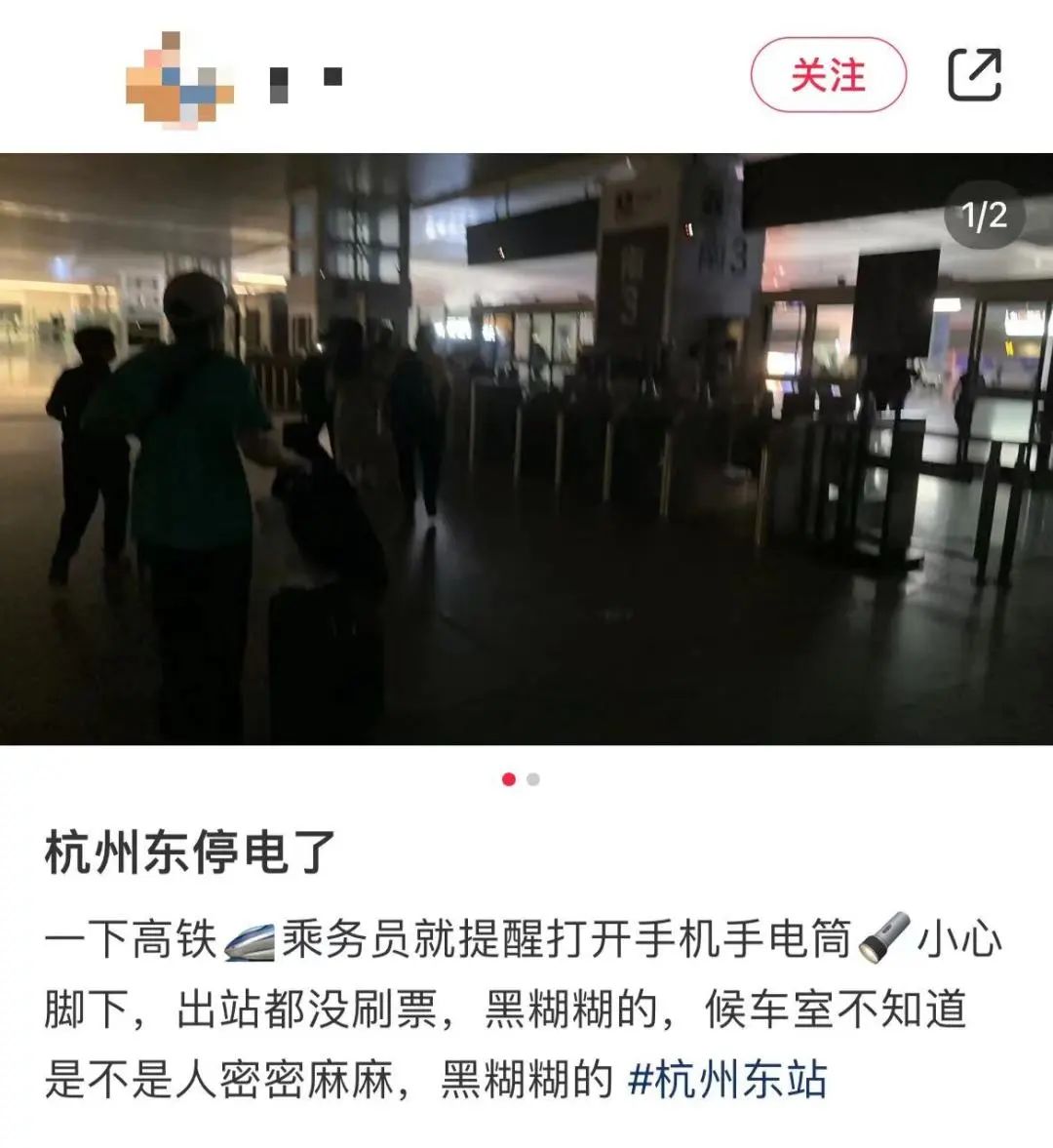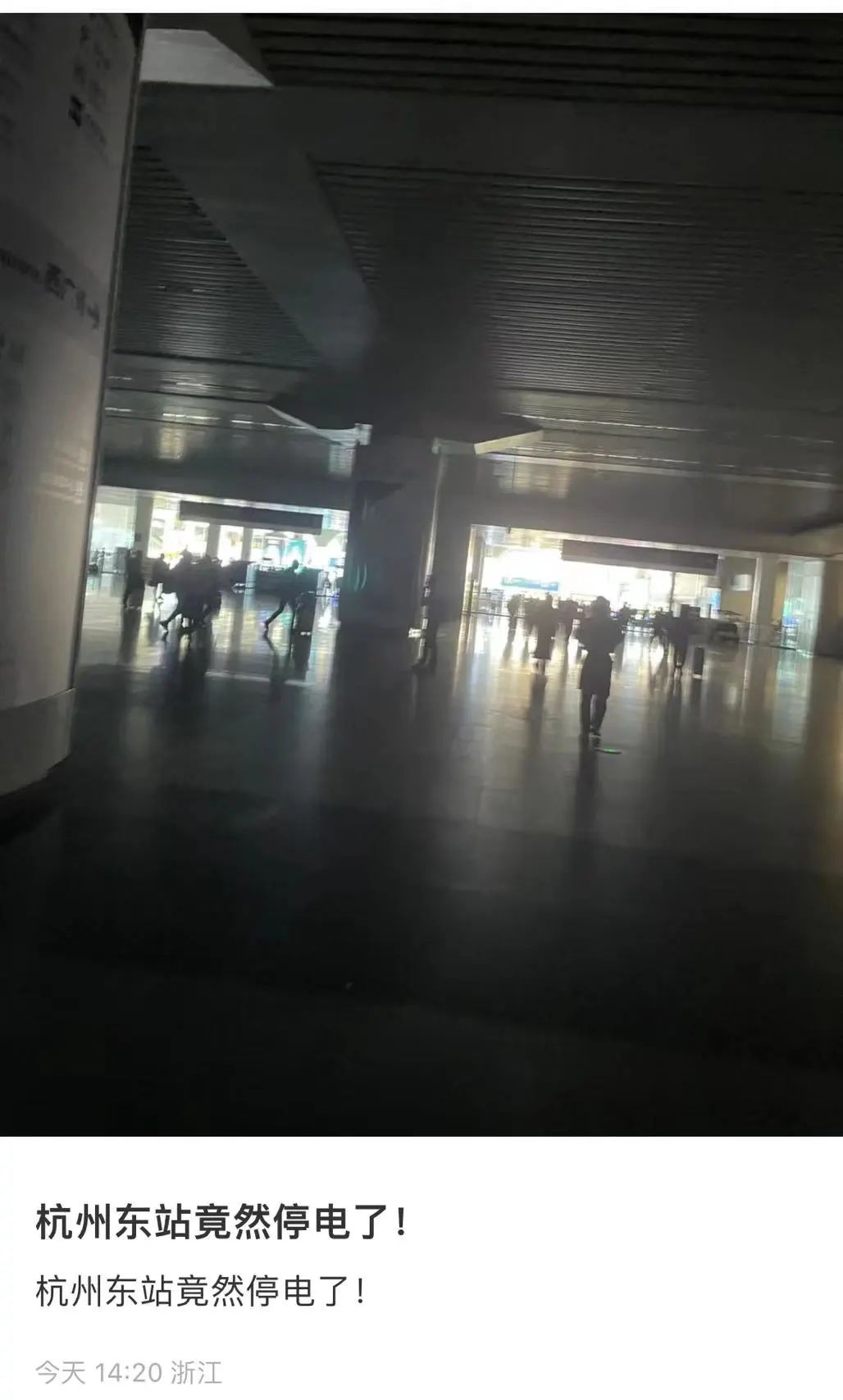 突发!杭州东站停电!多位网友发图:一片黑,发生了什么?