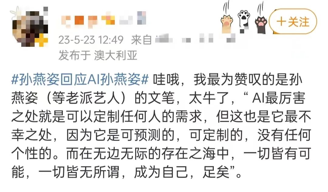 5月22日,孙燕姿在社交平台上发布了《我的AI》一文,首度回应自己对“AI孙燕姿”的看法。
