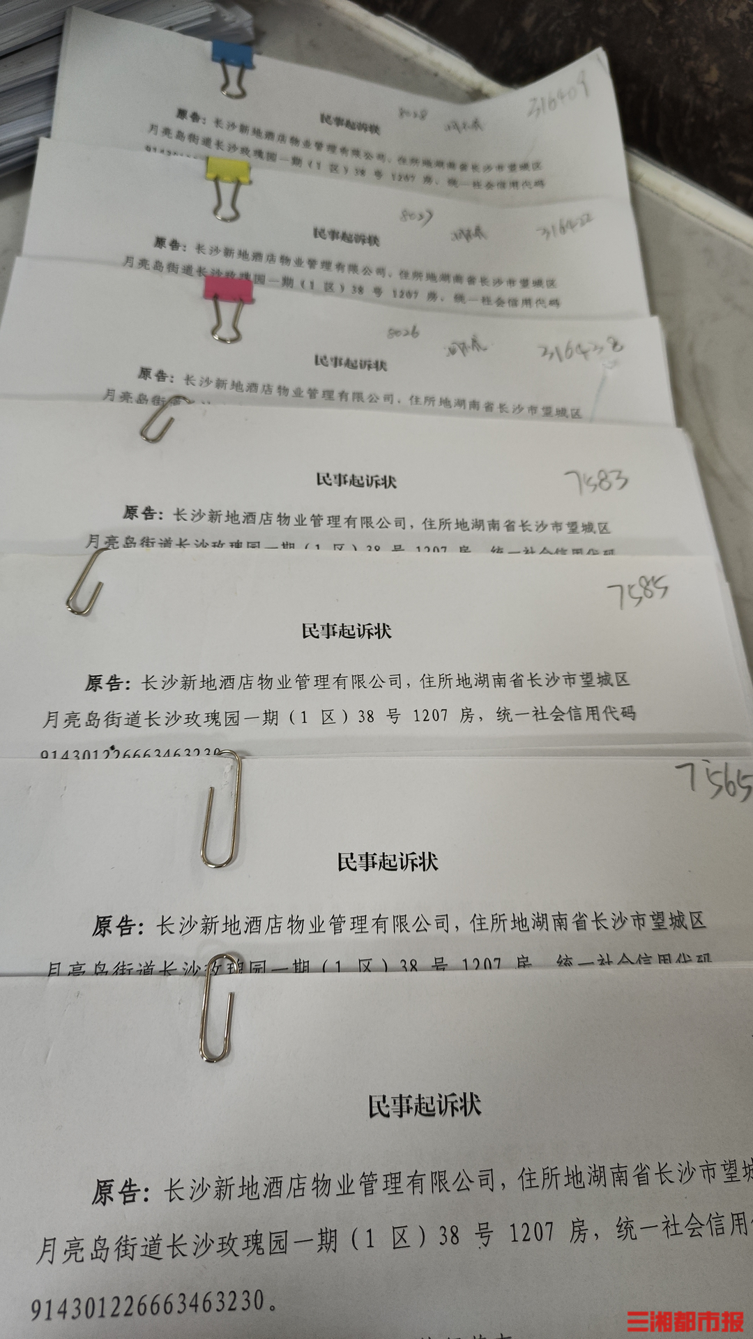 (长沙市望城区人民法院收到的长沙新地酒店物业管理有限公司部分起诉状。)