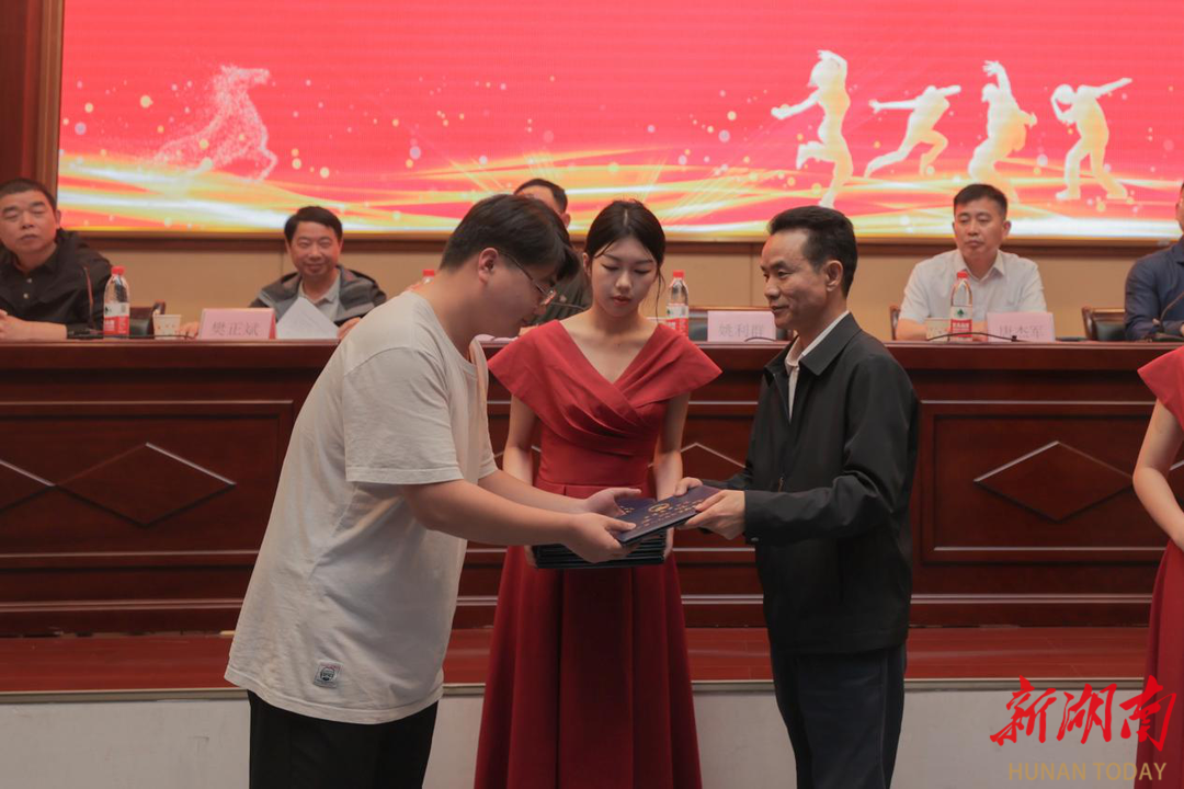 随后,彭东黎宣读了荣获湖南省普通高等学校2023届优秀毕业生名单,并对毕业生们表示衷心的祝贺。全体领导为获奖的优秀毕业生代表颁发了荣誉证书。