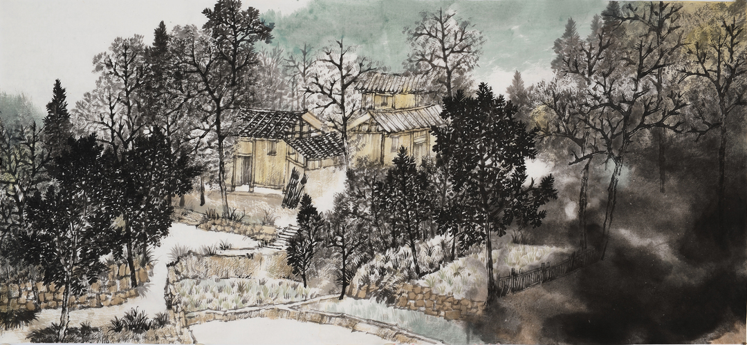 周华平美术作品《南村诗意之九》