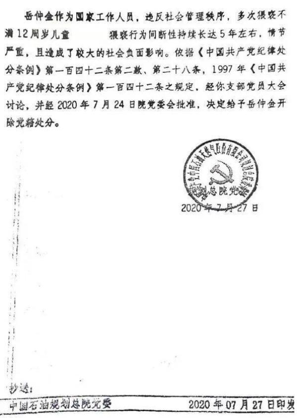 这份豆腐干大小的道歉声明,甚至都不是岳仲金本人撰写的,而是法院代拟的,声明里面没有悔恨、忏悔,道歉内容仅仅是“向李小冉道歉”这6个字。岳仲金甚至保住了在央企的金饭碗和“国家工作人员”身份,只是“行政留用察看二年”。